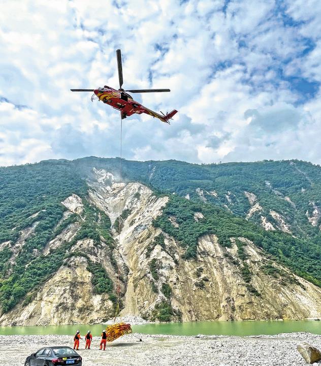 “直升機已起飛,山上卸貨人員做好準備。”9月12日10時36分,在四川省石棉縣王崗坪鄉(xiāng)愛國村,看到直升機在起吊點順利起吊第一批貨物,國網(wǎng)四川電力送變電建設(shè)有限公司搶險隊隊長易實立刻通過衛(wèi)星電話,對在山頂110千伏唐下線29號塔位的隊員徐慶明說。