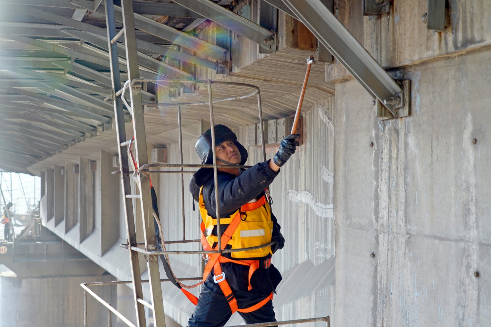 在兩個(gè)半小時(shí)的檢查過程中,圓滿完成了盧溝特大橋1-24孔的檢查任務(wù),螺栓無松脫、鋼構(gòu)件狀態(tài)良好,原來所發(fā)現(xiàn)的病害問題無變化。站在橋頭看向忙碌的他們,壯闊的蘆溝特大橋與飛檐走壁的護(hù)橋工們,組成了冬日里一幅保暖保供的美麗的風(fēng)景畫。(任振華)