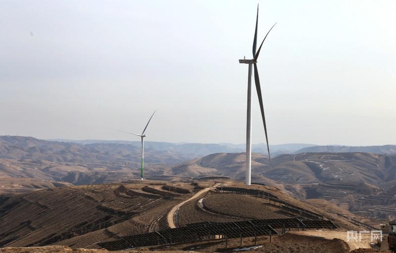 華能慶陽(yáng)風(fēng)光綜合新能源示范項(xiàng)目已安裝的風(fēng)機(jī)(央廣網(wǎng)發(fā) 趙小強(qiáng) 攝)