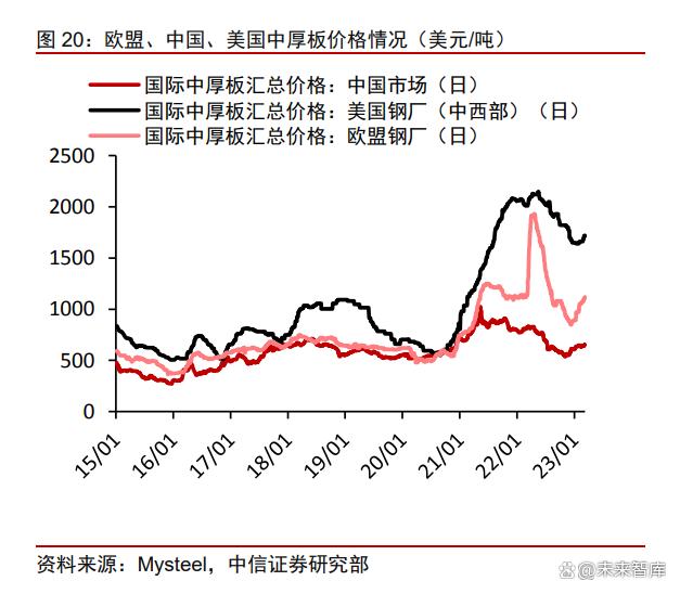海外塔筒樁基生產(chǎn)成本高昂,國內(nèi)成本優(yōu)勢強(qiáng)化。對比歐洲單樁龍頭 Sif 平均出貨價 格近 2500 歐元/噸(約合人民幣 1.9 萬元/噸),且供需緊縮呈價漲趨勢,我國單樁價格約 0.8 萬元/噸。在原材料成本方面,以天風(fēng)順能披露的數(shù)據(jù)為例,鋼材、法蘭等原材料成本 占塔筒總成本的 82%,其中鋼板(中厚板)成本占 57%,對比俄烏戰(zhàn)爭爆發(fā)以來的歐洲 鋼材價格暴漲,中厚板國內(nèi)外價差拉大。2023 年 3 月歐盟鋼廠中厚板均價 1100 美元/噸, 美國鋼廠均價 1710 美元/噸,而中國市場均價 649 美元/噸。在人工成本方面,根據(jù)歐盟披 露,歐盟本地塔筒企業(yè)的人均人工成本為 4.8 萬歐元/年,明顯高于國內(nèi)主要塔筒企業(yè)的人 均薪酬。我們預(yù)計塔筒環(huán)節(jié)有望進(jìn)一步強(qiáng)化國產(chǎn)出海的成本優(yōu)勢,樁基環(huán)節(jié)暫無反傾銷限 制,有望實現(xiàn)產(chǎn)品出口的突破。