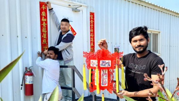 沙特國王港項(xiàng)目部精心策劃了一系列慶?;顒?dòng),讓中外員工共度歡樂祥和的中國年。團(tuán)拜會(huì)上,項(xiàng)目部向全體員工送上新春祝福,感謝大家的辛勤付出,并鼓勵(lì)團(tuán)隊(duì)在新的一年再接再厲,共創(chuàng)佳績。中外員工歡聚一堂,傾情演出,互致問候,現(xiàn)場氣氛熱烈喜慶。除夕夜,項(xiàng)目部組織了包餃子活動(dòng),大家紛紛動(dòng)手參與,搟皮、包餡、捏褶,忙得不亦樂乎。許多外籍員工在中國同事的指導(dǎo)下,第一次體驗(yàn)制作餃子的樂趣,感嘆這一傳統(tǒng)習(xí)俗的獨(dú)特魅力。年夜飯上,項(xiàng)目食堂特別準(zhǔn)備了豐盛的中式年菜,中外員工圍坐一堂,共享美食,暢談文化習(xí)俗。大家紛紛表示,將以更加飽滿的熱情投入工作,為項(xiàng)目高質(zhì)量履約貢獻(xiàn)力量,共同推動(dòng)“一帶一路”建設(shè)邁上新臺(tái)階。