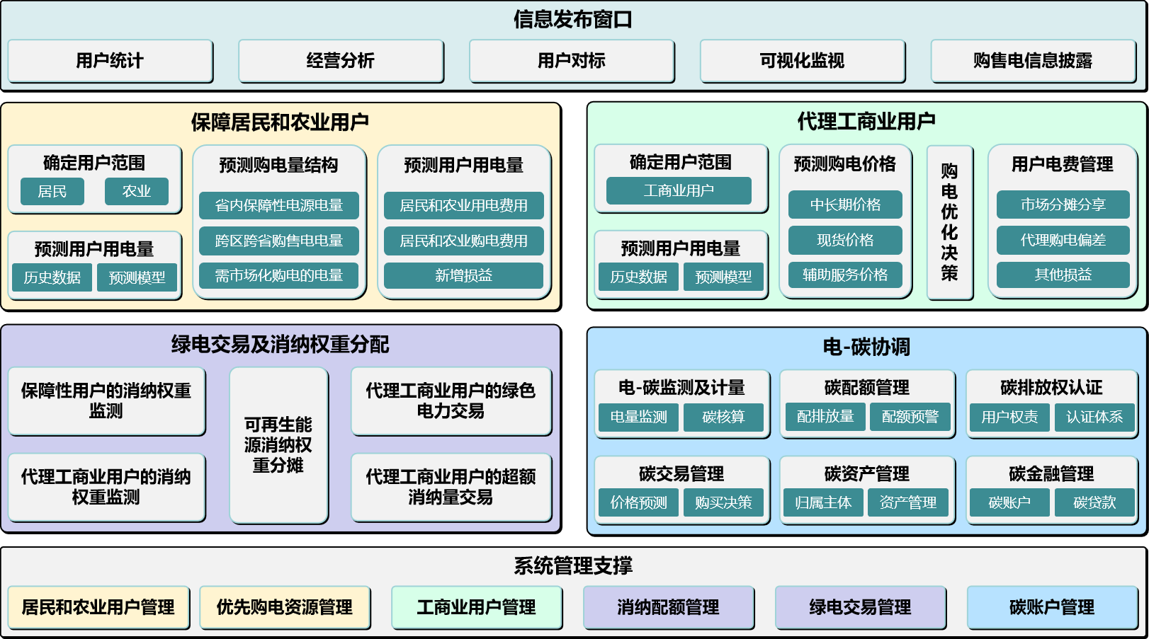 2021年11月30日,信產中電普華公司在能源研究會能源互聯(lián)網專委會上發(fā)布代理購電決策支撐工具平臺。代理購電決策支撐工具平臺的主要功能包括:保障居民與農業(yè)用戶管理、代理工商業(yè)用戶管理、綠電交易及消納權重分配管理、電碳協(xié)調管理、信息發(fā)布窗口及系統(tǒng)管理支撐功能六大功能模塊。