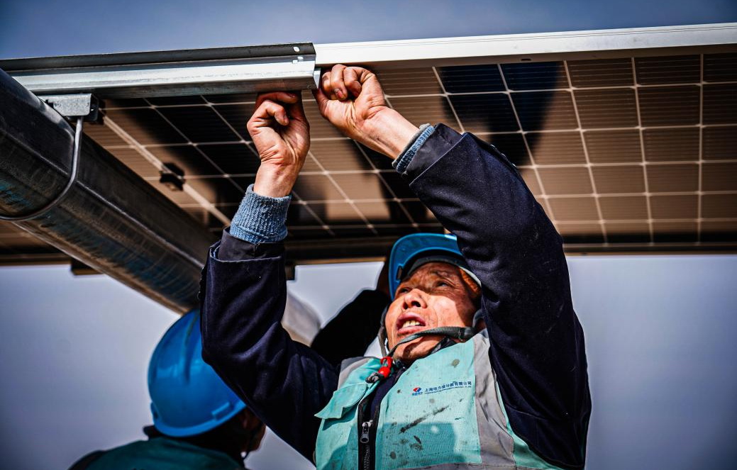 蒙陜寧三省交界的毛烏素沙地腹部,國家能源集團國電電力蒙西鄂爾多斯采煤沉陷區(qū)300萬千瓦光伏基地項目建設如火如荼。作為國家第二批以沙漠、戈壁、荒漠地區(qū)為重點的大型光伏基地項目之一,10.5萬畝的“光伏海洋”每年將把近57億度綠色電能從蒙西戈壁輸送至黃海之濱,滾滾電流跨越1300多公里長途跋涉,將有效緩解山東這個東部沿海工業(yè)大省的電力缺口,為東部地區(qū)的經(jīng)濟社會發(fā)展提供強大的綠色能源保障。該項目已完成175萬千瓦容量樁基施工,65萬千瓦容量支架施工,25萬千瓦容量組件安裝,1號升壓站已具備并網(wǎng)條件。