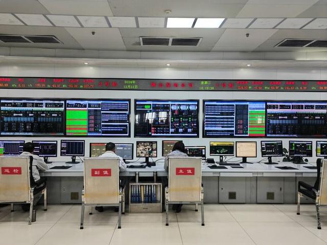工作人員在晉控電力塔山發(fā)電山西有限公司調(diào)度中心忙碌(2024年12月31日攝)。新華社記者 樊欣陽 攝