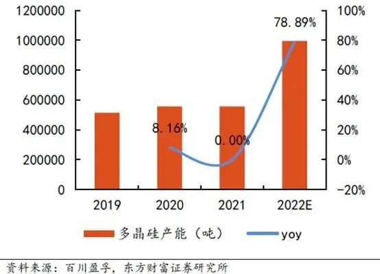 2022年下半年新建硅料產(chǎn)能開始逐步投放,根據(jù)百川盈孚統(tǒng)計(jì),2022年國(guó)內(nèi)多晶硅有效產(chǎn)能將達(dá)到99.55萬(wàn)噸,同比增加78.89%,硅料新建產(chǎn)能投產(chǎn)將直接拉動(dòng)石英坩堝需求。