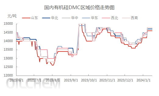 據(jù)悉,本輪有機硅DMC漲價始于合盛硅業(yè)(603260.SH)率先將DMC價格上調(diào)300元/噸,進而引發(fā)主要廠商跟漲。“1月6號突然進行了提價,上漲300元/噸,打破了該廠家價格上持久的安靜,其他廠商開始限量惜售,整個市場上現(xiàn)貨變得緊張,恐慌情緒下引發(fā)了下游集中補庫。從現(xiàn)在DMC廠商情況來看,在前期的調(diào)度下出貨沒有任何壓力。”隆眾資訊分析師劉昊介紹稱。