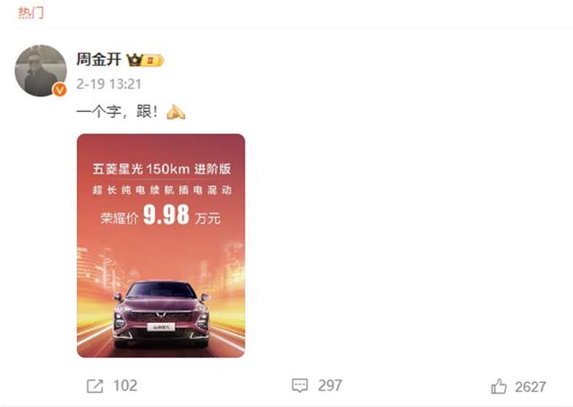 上汽通用五菱品牌事業(yè)部副總經理周钘在微博表示跟進降價