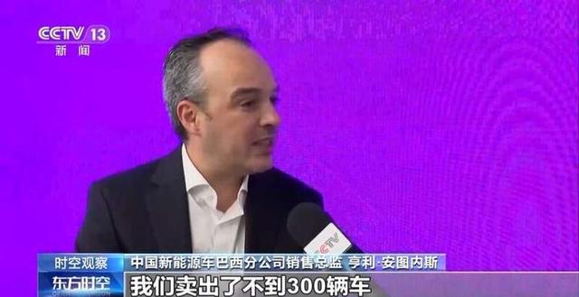 中國(guó)新能源車(chē)巴西分公司銷(xiāo)售總監(jiān) 亨利·安圖內(nèi)斯:在2022年,我們賣(mài)出了不到300輛車(chē)。2023年我們賣(mài)出了近1.8萬(wàn)輛,今年我們(已經(jīng))有接近3萬(wàn)輛的銷(xiāo)量。