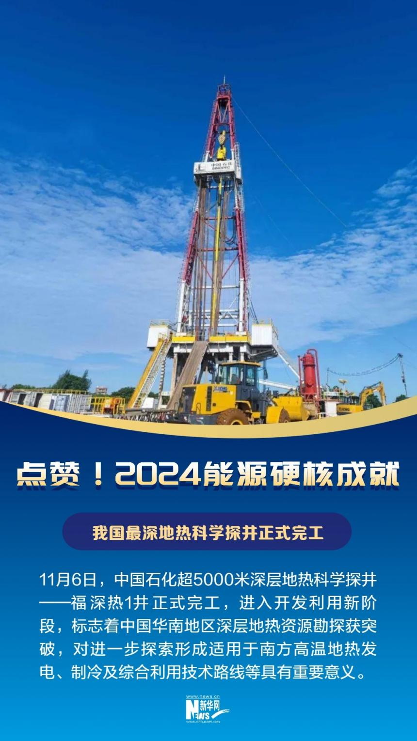 11月6日,中國石化超5000米深層地?zé)峥茖W(xué)探井——福深熱1井正式完工,進入開發(fā)利用新階段,標志著中國華南地區(qū)深層地?zé)豳Y源勘探獲突破,對進一步探索形成適用于中國南方地區(qū)的高溫地?zé)岚l(fā)電、制冷及綜合利用技術(shù)路線等具有重要意義。