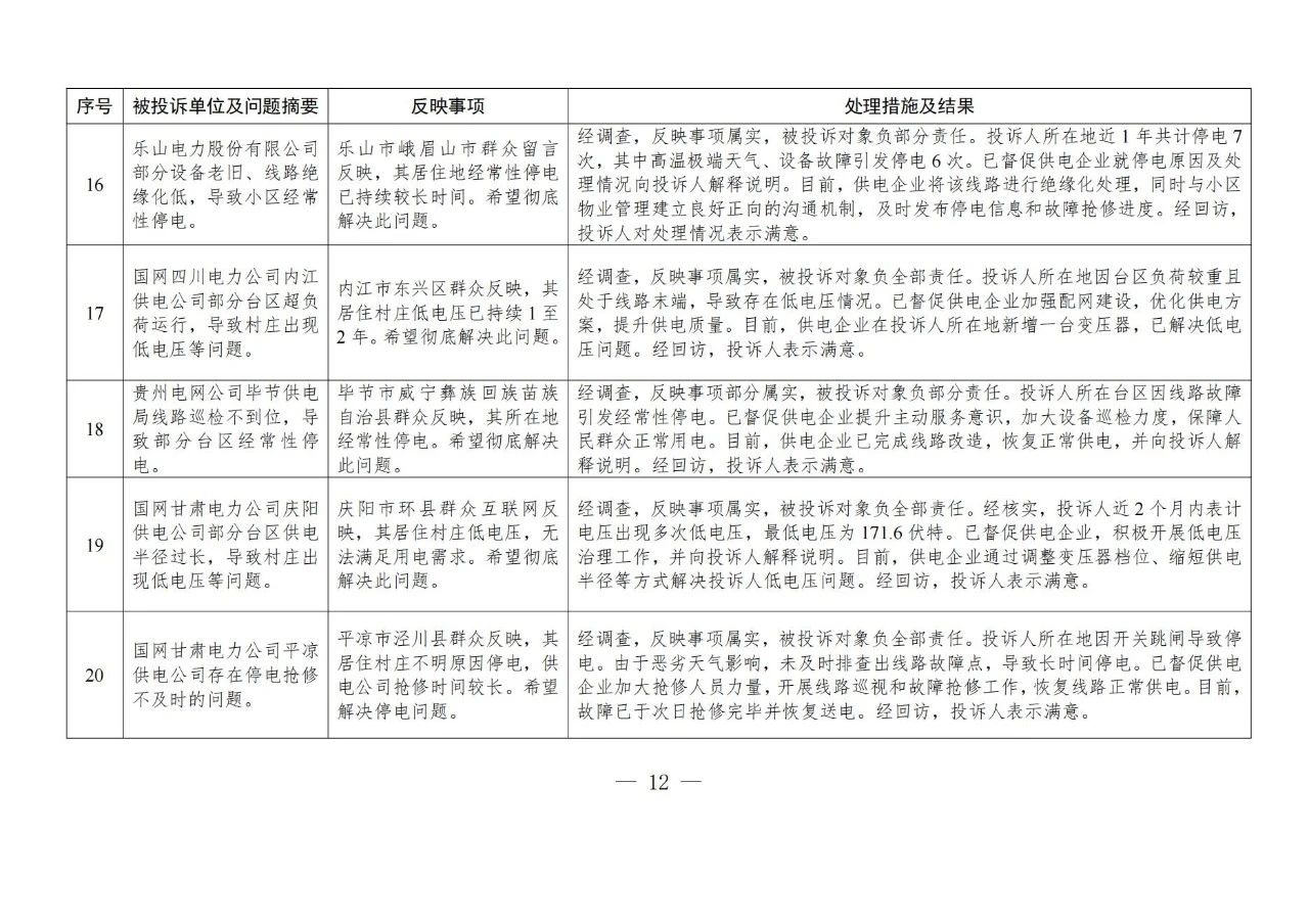 國家能源局11月份12398能源監(jiān)管熱線投訴舉報(bào)辦理情況