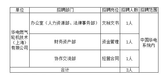 華電燃氣輪機技術(shù)(上海)有限公司一般管理人員公開招聘的公告