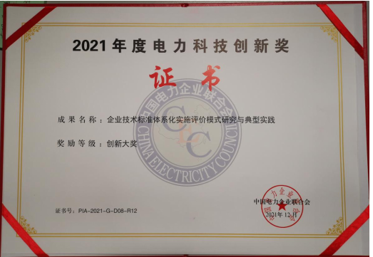 北京中電普華信息技術(shù)有限公司參與申報的《企業(yè)技術(shù)標(biāo)準(zhǔn)體系化實施評價模式研究與典型實踐》項目榮獲2021年度電力科技創(chuàng)新獎大獎。