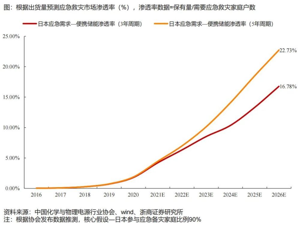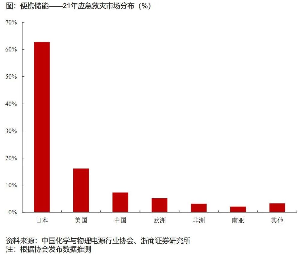 此外,在日本市場,21年應急救災需求出貨量占其總便攜儲能市場的87%。具體如下圖所示: