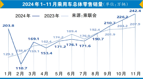 7月新能源汽車滲透率首次突破50%大關(guān),提前實(shí)現(xiàn)了國家設(shè)定的目標(biāo);11月14日,中國新能源汽車的產(chǎn)量首次突破年度1000萬輛,是全球首個(gè)新能源汽車年度產(chǎn)量達(dá)到1000萬輛的國家;在“兩新”(大規(guī)模設(shè)備更新和消費(fèi)品以舊換新)政策的強(qiáng)力拉動(dòng)下,我國乘用車產(chǎn)銷11月首次突破了300萬輛……